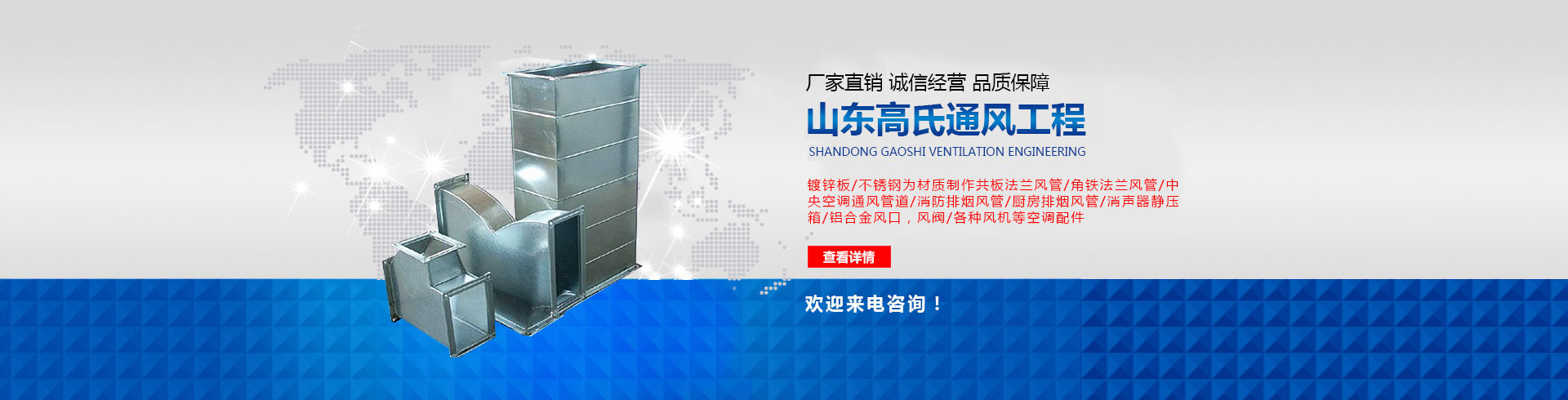 山東高氏通風管道工程有限公司主要經(jīng)營通風管,酒店廚房排煙罩酒、黑白鐵加工已有多年,主要從事通風管道設(shè)計、制作、安裝為一體的企業(yè),風雨中我們在濟南的通風管道行業(yè)深受客戶的信賴,公司成立之初即確定一個高起點,公司擁有專用通風管生產(chǎn)線,各種設(shè)備齊全。 公司產(chǎn)品主要有,以鍍鋅板、不銹鋼為材質(zhì)制作共板法蘭風管,角鐵法蘭風管,空調(diào)通風管道,消防排煙風管,廚房排煙風管,消聲器,靜壓箱,鋁合金風口,風閥,各種風機,等空調(diào)配件。 公司擁有高素質(zhì)管理人員,業(yè)務(wù)素質(zhì)高精、管理能力強,展望未來,任重而道遠,我們愿與各業(yè)同仁一道,相互進步,共同發(fā)展,服務(wù)回饋社會,...